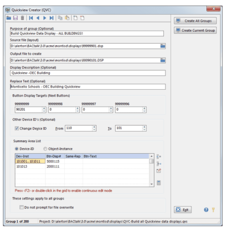 Automates the creation of quickview screens (summary screens) allowing you to build many quickview screens for all your devices at once.
