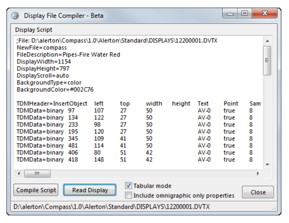 Read an entire display file and output it to a text file which can be edited in a text editor or in an Excel workbook and then recompiled back to a display. Can be used with its user-interface or from the command line.